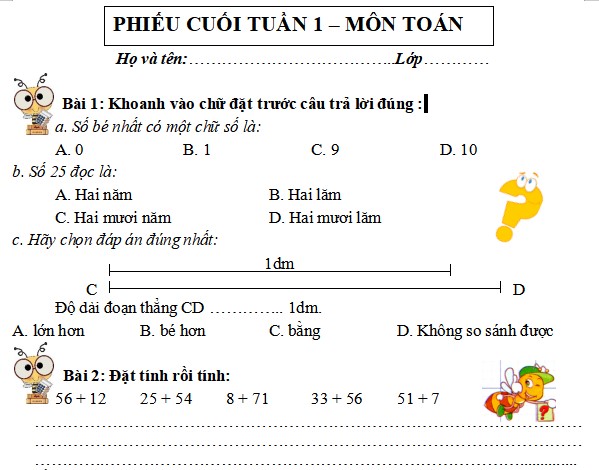 Phiếu bài tập cuối tuần lớp 2 môn Tiếng Việt Kết nối tri thức - Tuần 1 (Cơ bản + Nâng cao)