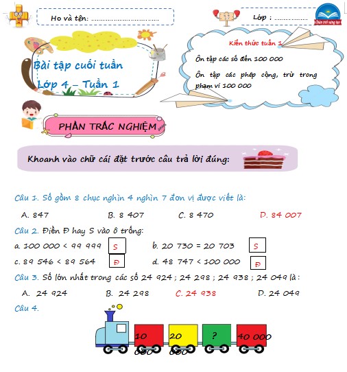 Bài viết hay Phiếu bài tập cuối tuần lớp 4