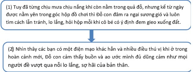 - Lời của nhân vật: “Giá mình cũng sống dũng cảm như mọi người...Bây giờ thì nhộn rồi. Họ đã là những cây đỗ mập mạp, còn mình thì vẫn chỉ là một hạt đỗ quất queo”.