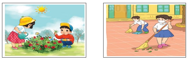 Câu 4: (M2) (1 điểm) Quan sát tranh và viết việc làm của các bạn nhỏ trong hình