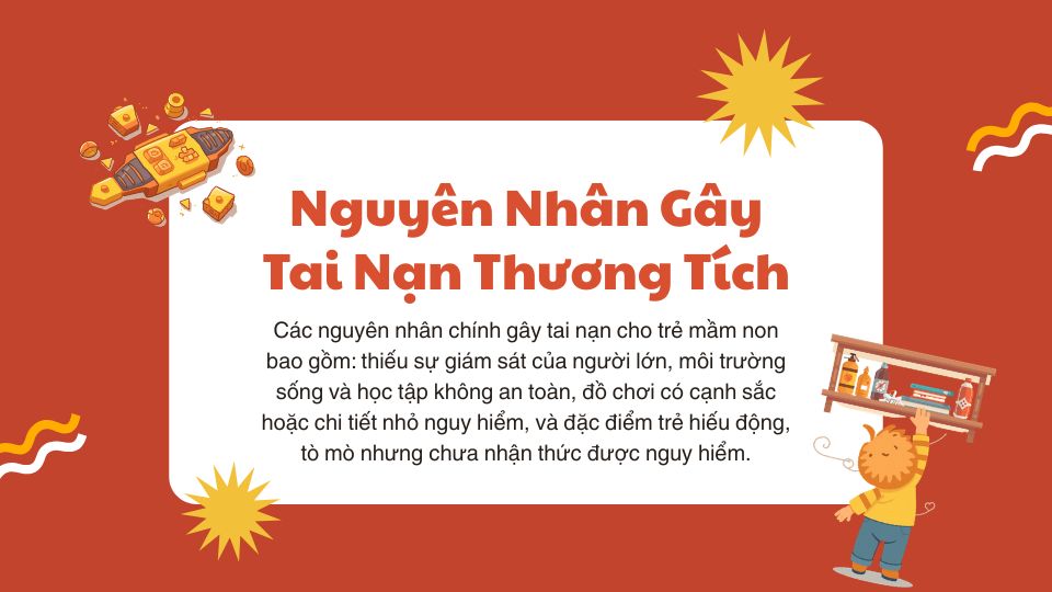 Trẻ ở lứa tuổi mầm non vô cùng hiếu động, tò mò, ham hiểu biết và luôn sử dụng mọi giác quan để khám phá thế giới xung quanh trẻ. Ở lứa tuổi này trẻ còn quá non nớt để tự bảo vệ mình, nên nguy cơ xảy ra tai nạn với trẻ là rất cao, nếu như thiếu sự quan tâm, định hướng đúng đắn của người lớn hoặc các điều kiện cơ sở vật chất để chăm sóc giáo dục trẻ không đảm bảo an toàn. Vì vậy, khi vui chơi hoặc trong sinh hoạt rất dễ xảy ra tai nạn thương tích như: rách da, tổn thương phần mềm, gãy xương… để lại những hậu quả không tốt thậm chí có thể nguy hại đến tính mạng trẻ. Tuy nhiên phần lớn các tai nạn trên đều có thể phòng tránh được nếu cha, mẹ, cô giáo và mọi người trong cộng đồng xác định được căn nguyên, nâng cao nhận thức, xây dựng môi trường an toàn cho trẻ.