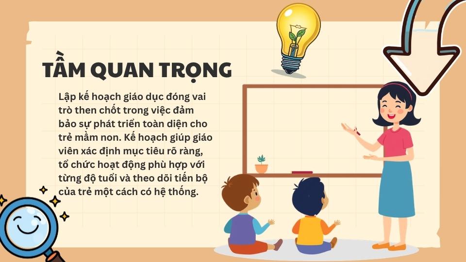 Kế hoạch giáo dục giúp giáo viên thực hiện chương trình giáo dục mầm non một cách có mục đích và có hệ thống. Bao gồm: