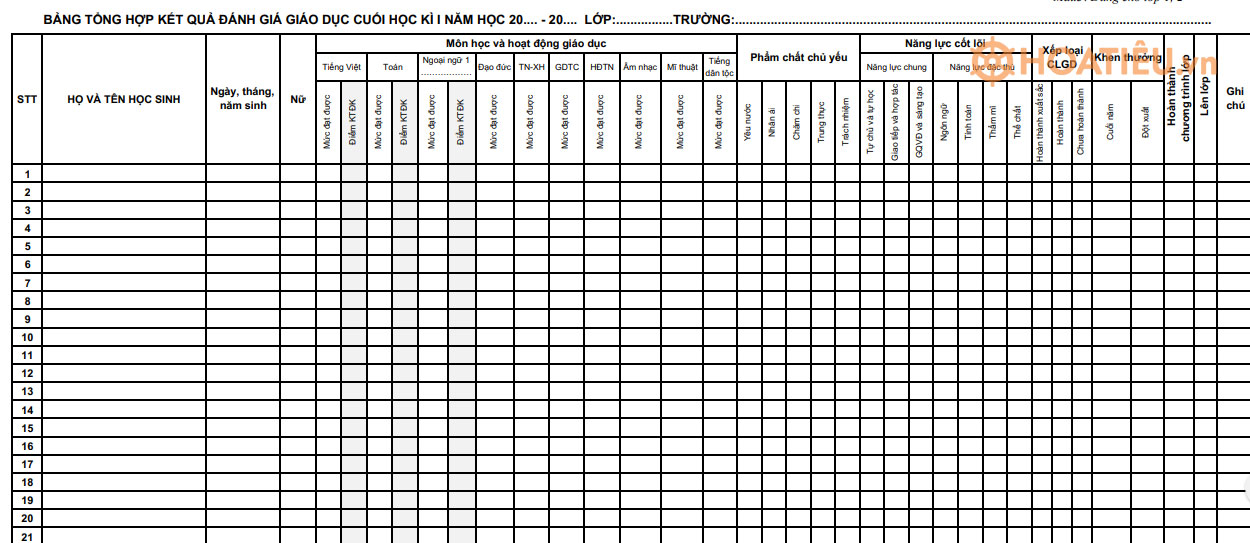 Mẫu bảng tổng hợp tọa độ vị trí mốc, bảng