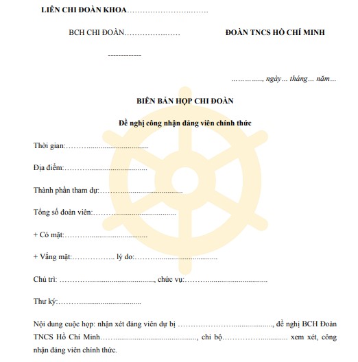 Tải biên bản họp chi đoàn xét chuyển đảng chính thức
