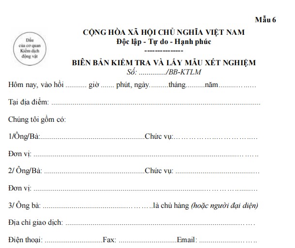 1. Mẫu biên bản kiểm tra và lấy mẫu xét nghiệm