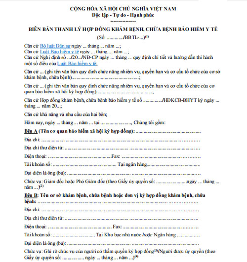 1. Mẫu biên bản thanh lý hợp đồng khám chữa bệnh BHYT