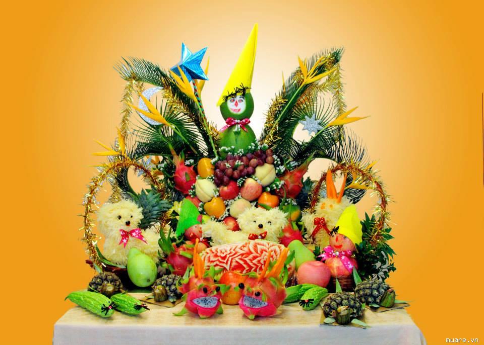 - Mâm ngũ quả: Khác với mâm ngũ quả ngày Tết, Mâm ngũ quả vào ngày Trung thu thường sẽ có các loại hoa quả như: dưa hấu, hồng đỏ, hồng ngâm, đu đủ, bưởi, táo, quýt, na... Nhìn chung đây đều là những loại quả đa dạng màu sắc, dễ trang trí. Với dưa hấu, dưa vàng hoặc bưởi, người trang trí có thể vẽ tạo hình trên quả dưa, hay làm chú cún, cá chép hóa rồng bằng múi bưởi.