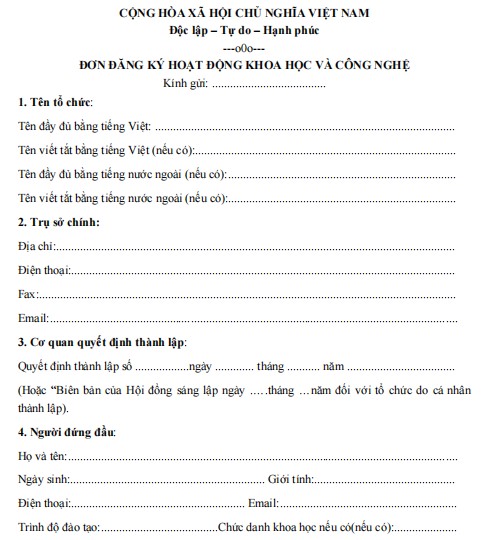 Dưới đây là mẫu đơn đăng ký hoạt động khoa học và công nghệ mới nhất, mời bạn đọc tham khảo và tải về để sử dụng khi cần thiết.