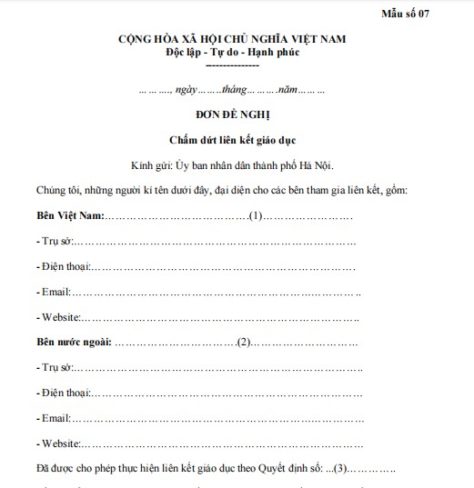 1. Mẫu đơn đề nghị chấm dứt liên kết giáo dục
