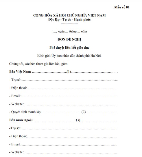 1. Mẫu Đơn đề nghị phê duyệt liên kết giáo dục
