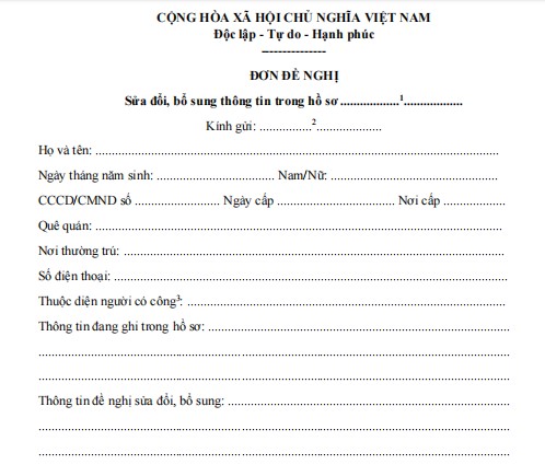 1. Biểu mẫu đề nghị sửa đổi, bổ sung thông tin trong hồ sơ người có công