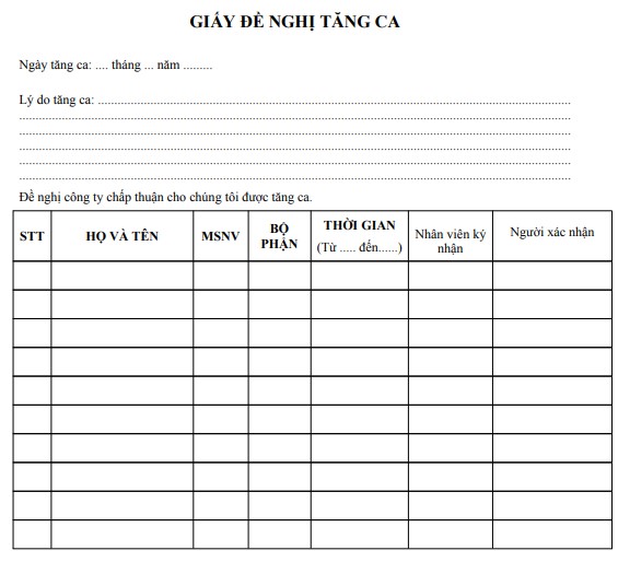 Giấy đề nghị tăng ca