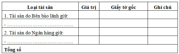 - Giao tài sản bảo đảm do Ngân hàng giữ theo quy định tại Khoản 1 Điều 4 hợp đồng này cùng toàn bộ giấy tờ gốc của tài sản bảo đảm cho Ngân hàng giữ.
