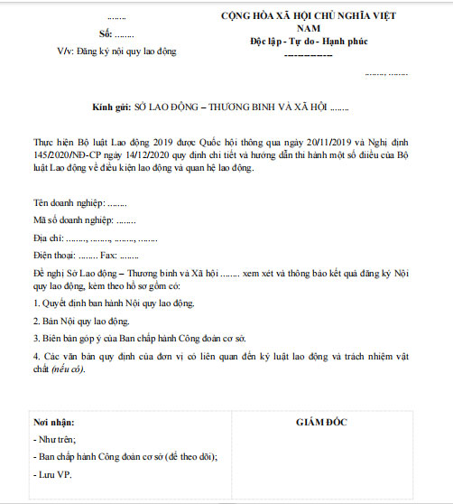 - Văn bản đề nghị đăng ký nội quy lao động;
