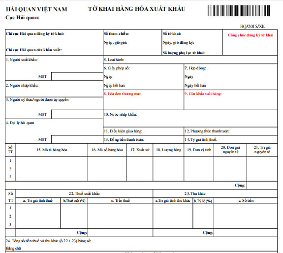 HẢI QUAN VIỆT NAM TỜ KHAI HÀNG HÓA XUẤT KHẨU