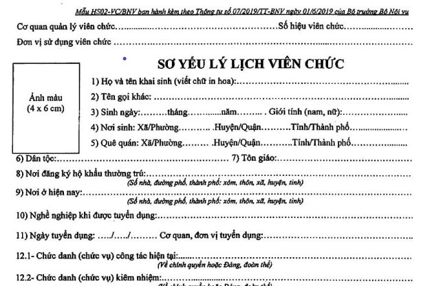 2. Mẫu sơ yếu lý lịch viên chức mới nhất