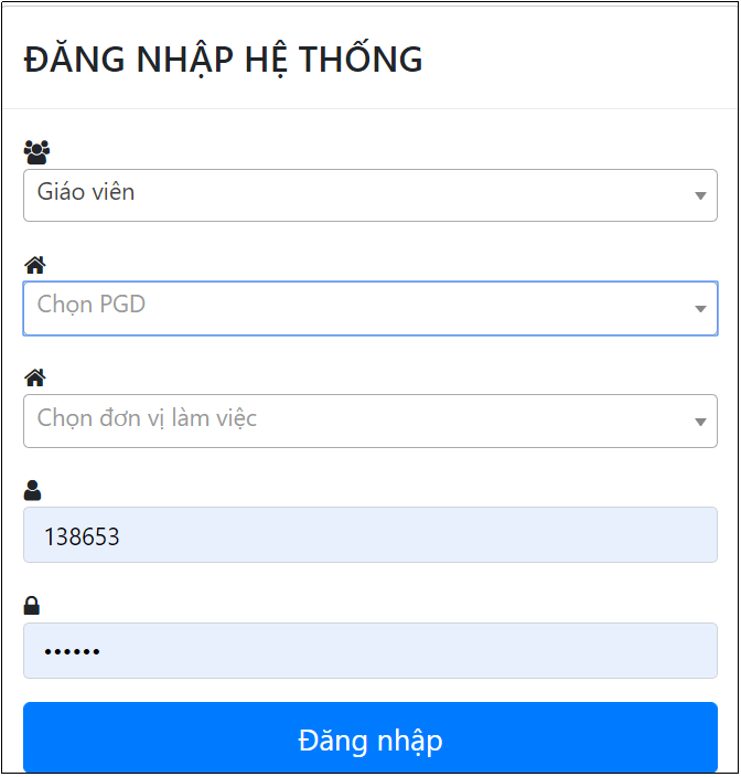 • Nhập tên đăng nhập và mật khẩu theo danh sách đã được cấp sẵn.
