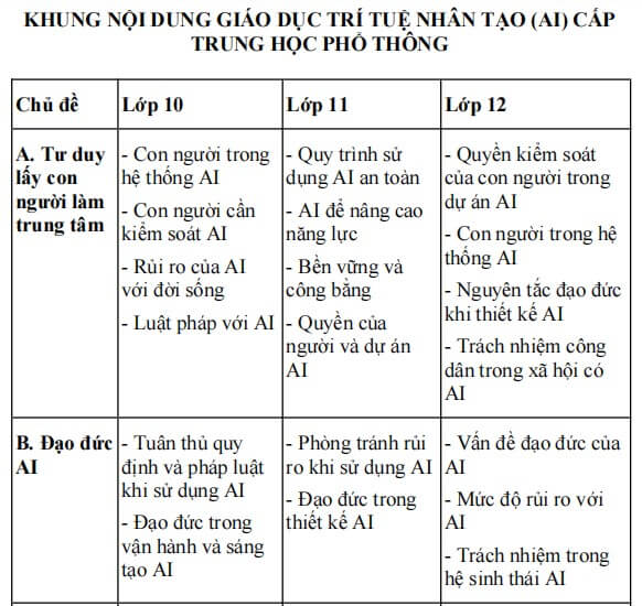 1. Khung nội dung giáo dục AI cấp THPT
