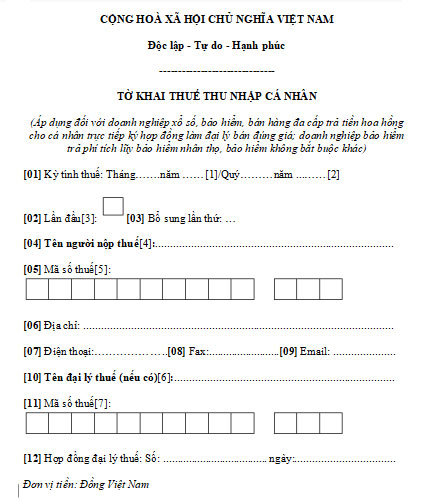 Tờ khai thuế TNCN đối với doanh nghiệp xổ số, bảo hiểm, bán hàng đa cấp