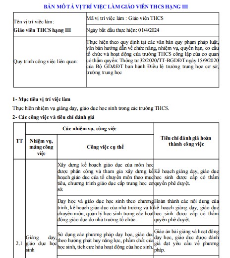 1. Bản mô tả vị trí việc làm giáo viên hạng 3