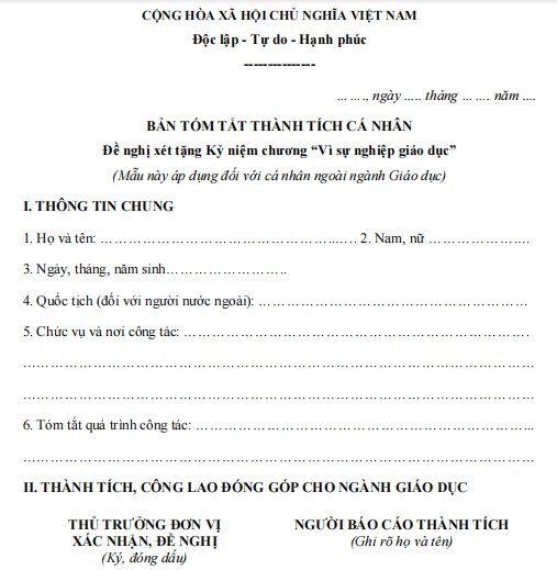 Mẫu phiếu nhận xét, đánh giá ứng viên đạt tiêu chuẩn chức danh giáo sư, phó giáo sư