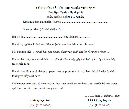 - Ký và ghi rõ họ tên của người viết bản kiểm điểm.
