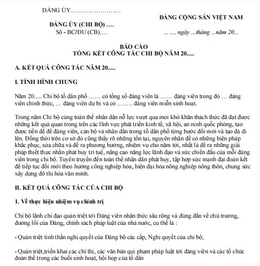 Mẫu báo cáo tổng kết hoạt động chi bộ tổ dân phố