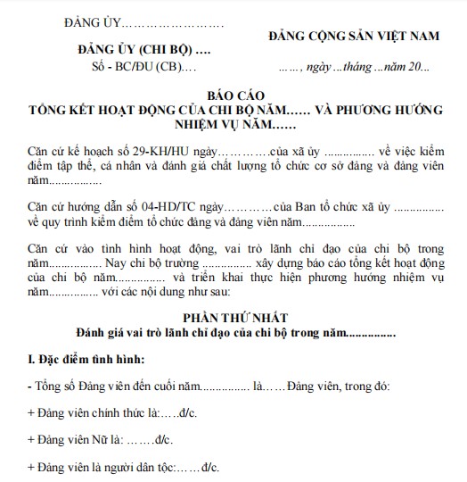 2. Nội dung báo cáo công tác chi bộ ở trường học