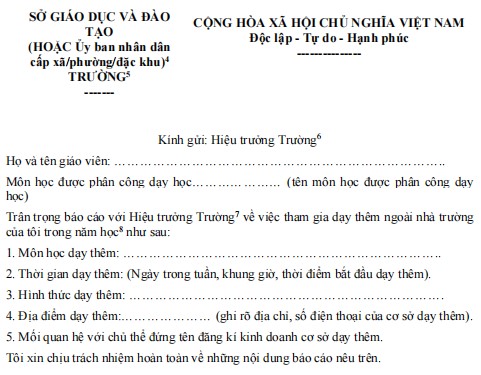 Mẫu báo cáo của giáo viên dạy thêm ngoài trường