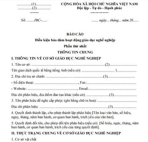 Mẫu Báo cáo điều kiện bảo đảm hoạt động giáo dục nghề nghiệp tại phân hiệu