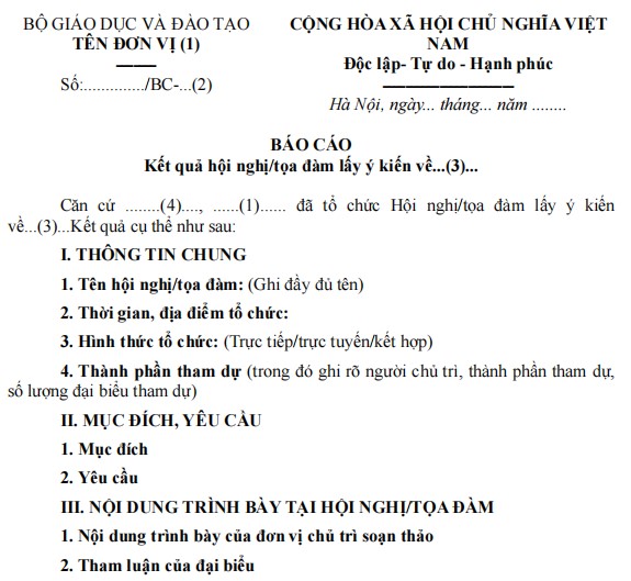 Mẫu Báo cáo hội thảo, tọa đàm lấy ý kiến