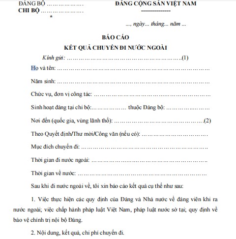 Mẫu báo cáo kết quả chuyến đi nước ngoài