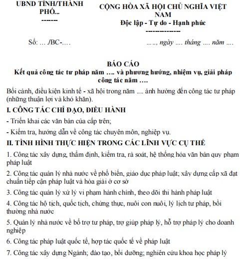 Mẫu báo cáo kết quả công tác tư pháp cuối năm