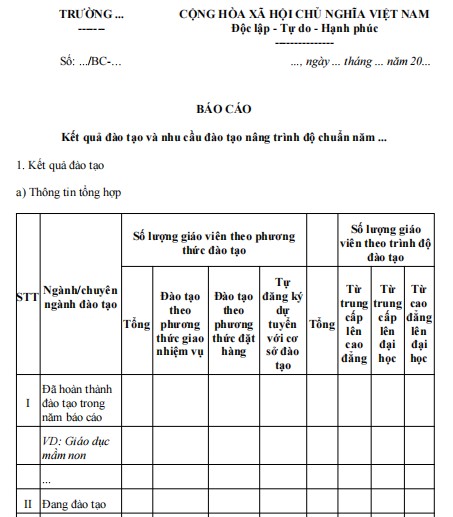 Bản nhận xét kết quả đào tạo đối với giảng viên