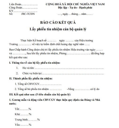 Mẫu báo cáo kết quả lấy phiếu tín nhiệm