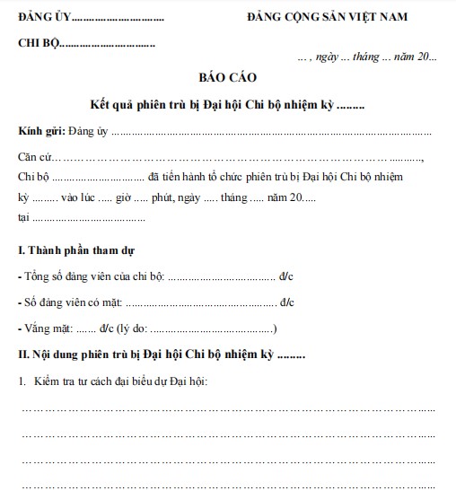 Mẫu báo cáo kết quả phiên trù bị Đại hội chi bộ