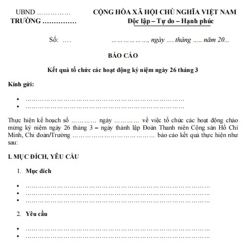Mẫu Báo cáo kết quả tổ chức hoạt động kỷ niệm ngày 26-3