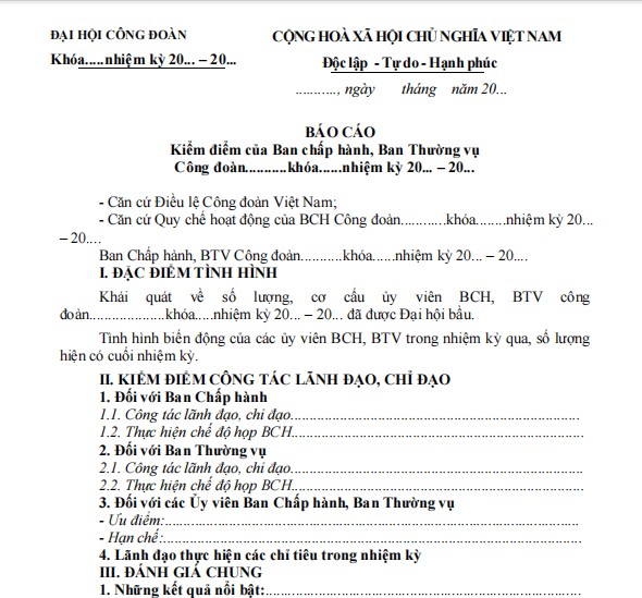 1. Mẫu báo cáo kiểm điểm Ban Chấp hành Công đoàn cơ sở nhiệm kỳ cũ