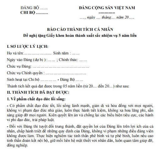 Mẫu Báo cáo thành tích của bí thư chi bộ