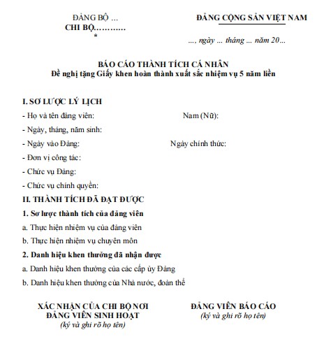 Mẫu báo cáo thành tích đề nghị khen thưởng đột xuất