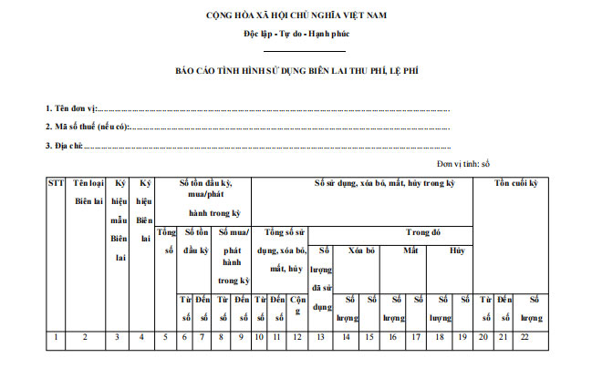 BÁO CÁO TÌNH HÌNH SỬ DỤNG BIÊN LAI THU PHÍ, LỆ PHÍ