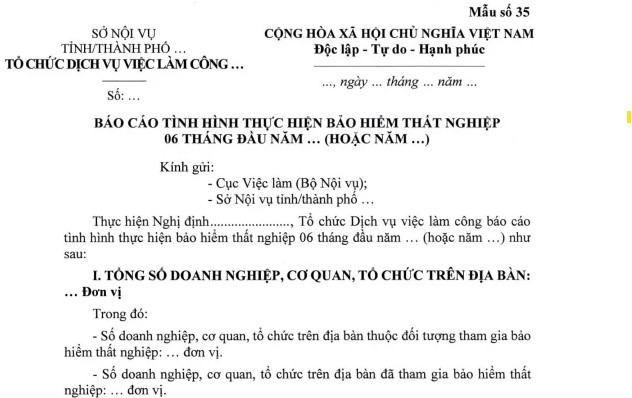 Mẫu báo cáo tình hình tham gia bảo hiểm thất nghiệp