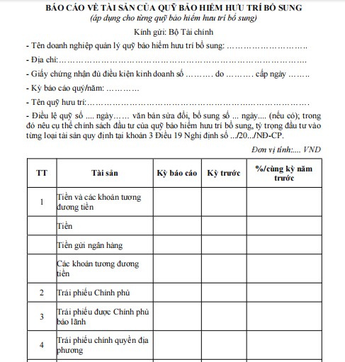 Mẫu báo cáo về tài sản của quỹ bảo hiểm hưu trí bổ sung