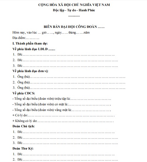 Mẫu biên bản Đại hội công đoàn cơ sở