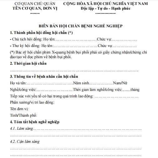 1. Mẫu biên bản hội chẩn bệnh nghề nghiệp