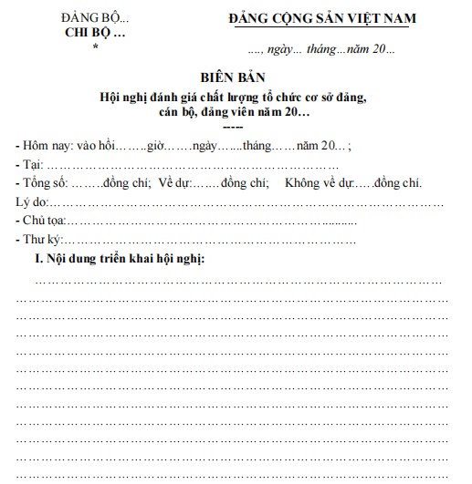 1. Biên bản Hội nghị đánh giá chất lượng tổ chức cơ sở đảng, cán bộ, đảng viên