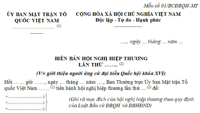 1. Biên bản hội nghị hiệp thương giới thiệu người ứng cử đại biểu Quốc hội khóa XVI