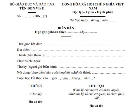 Trong hoạt động quản lý và điều hành tại các cơ sở giáo dục, biên bản họp luôn giữ vai trò quan trọng nhằm ghi nhận đầy đủ nội dung thảo luận, quyết nghị và trách nhiệm của từng thành viên tham dự. Theo quy định tại Thông tư số 29/2026/TT-BGDĐT, Mẫu số 06 về biên bản họp đã được ban hành để thống nhất cách trình bày, đảm bảo tính pháp lý và thuận tiện trong việc lưu trữ, tra cứu.