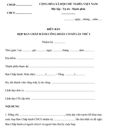 Mẫu biên bản họp ban chấp hành công đoàn cơ sở