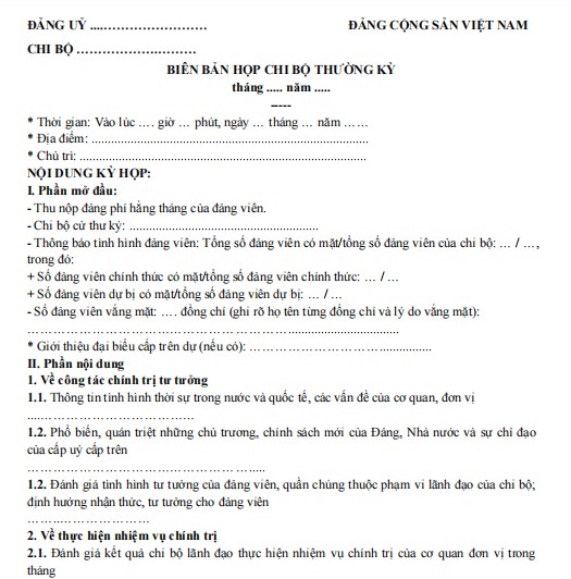 Mẫu biên bản họp chi bộ thường kỳ mới nhất năm 2025